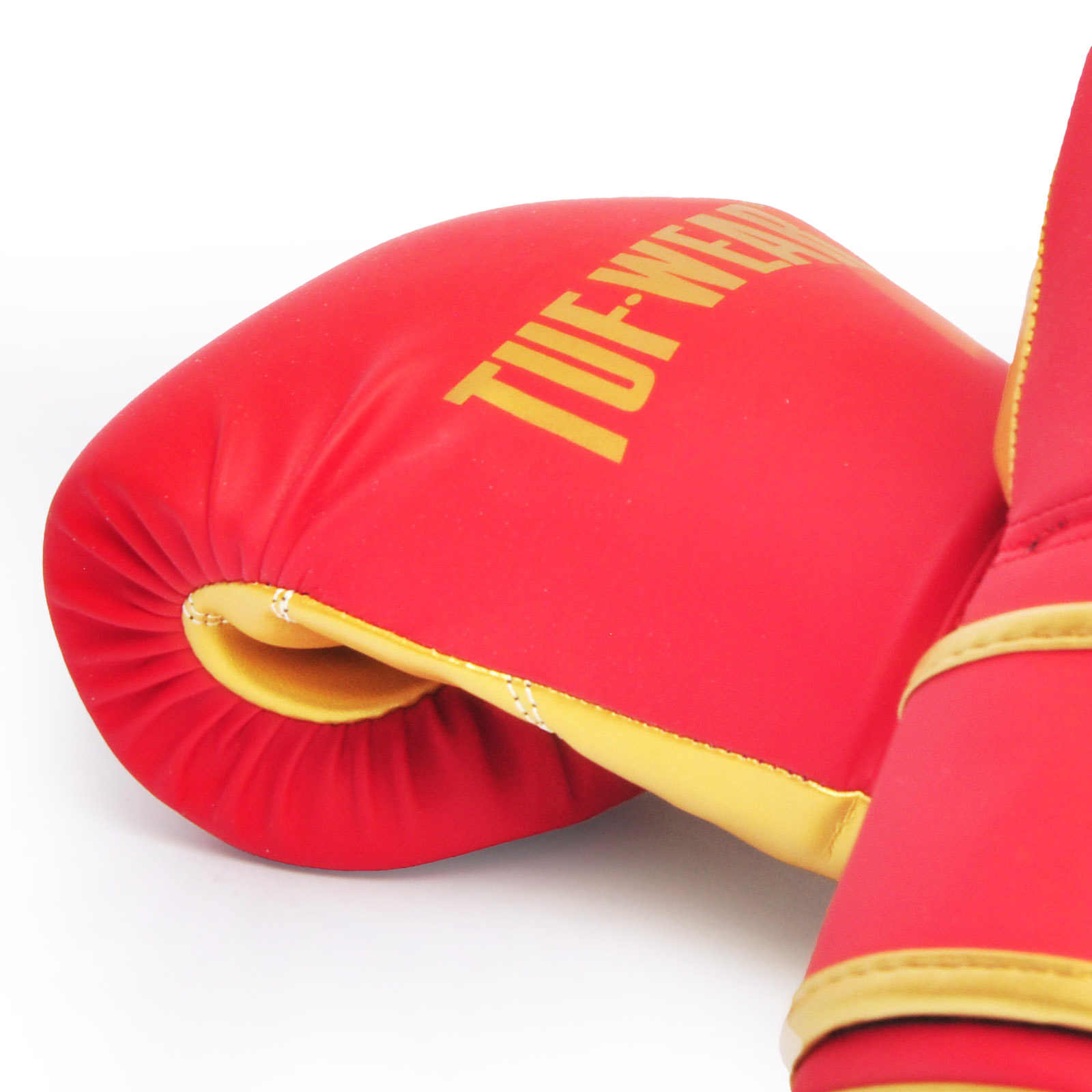 These Tuf Wear Wham Junior training gloves are crafted in a matt synthetic PU red and gold material. Perfect for your juniors starting their boxing journeyÂ